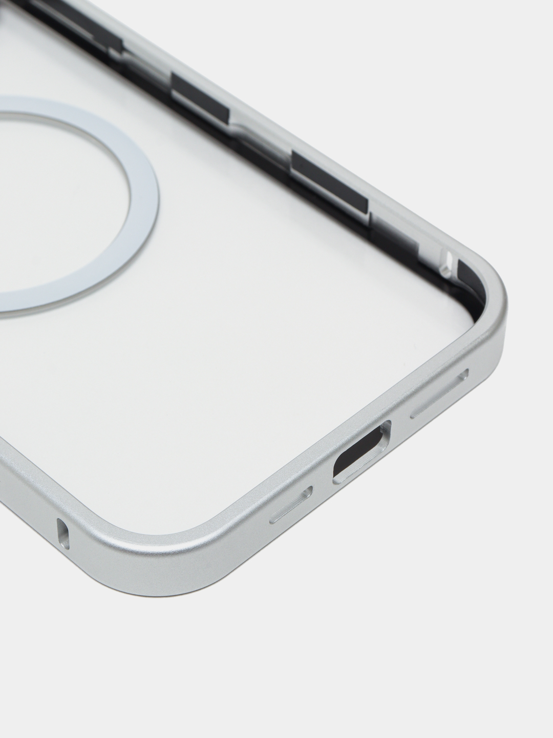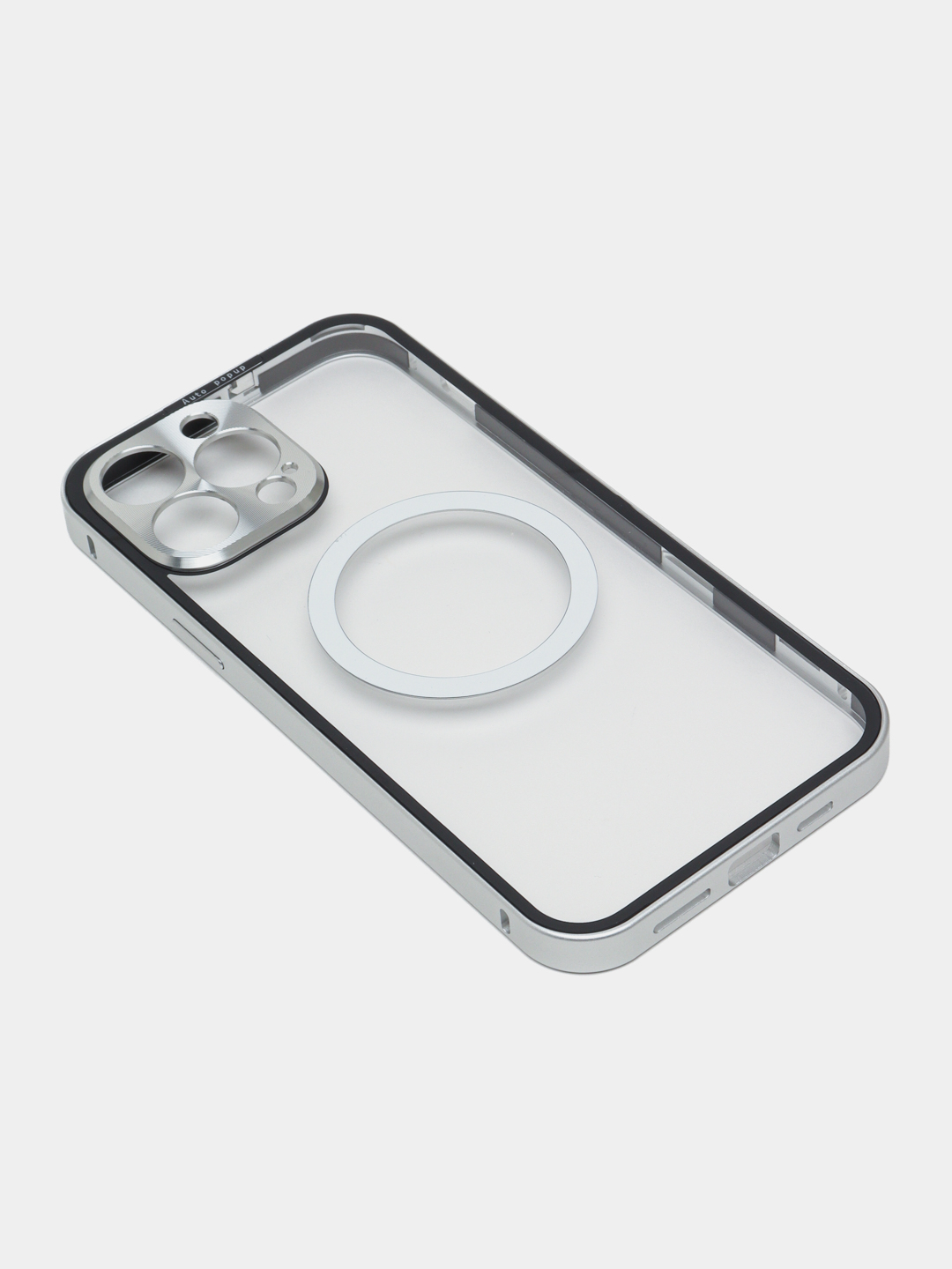 Metall ramka, alyuminiy shaffof orqa qopqoq, magnit telefon qutisi iPhone 13 Pro Max, simsiz zaryadlash qutisi Magsafe