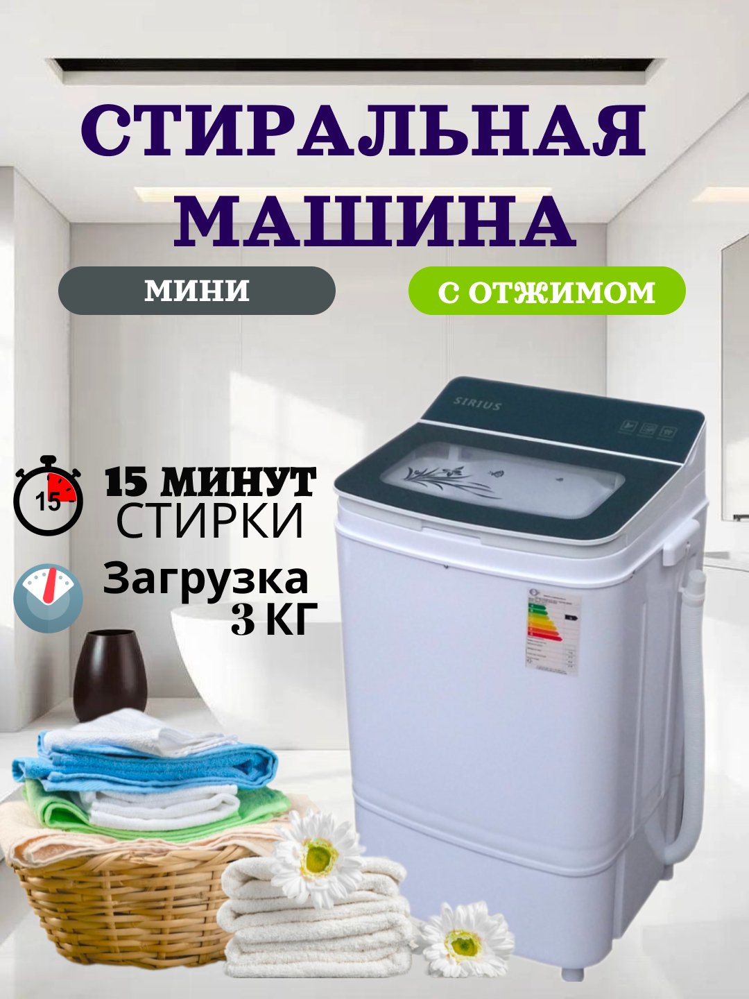 🔹 Yuklama hajmi: 3 kg – kundalik kiyimlar, bolalar kiyimlari va yengil matolar uchun ideal